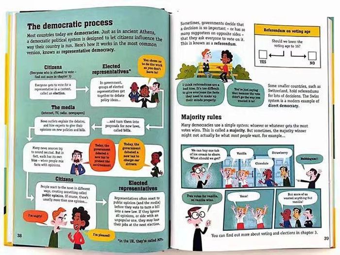 “Politics for Beginners” нь өсвөр насныхан болон улс төрд анхлан сонирхогчдод зориулсан ойлгомжтой, сонирхолтой гарын авлага юм. Энэхүү ном нь ардчилал, хүний эрх, засаглал, улс төрийн нам, сонгууль, хууль тогтоох байгууллага, олон улсын харилцаа зэрэг чухал ойлголтуудыг хялбар байдлаар тайлбарладаг. Номын агуулга нь өнгө өнгийн зураг, график, инфографик, товч тайлбарууд-аар баяжуулсан тул уншигчид төвөггүй ойлгож, бодит жишээгээр дамжуулан улс төрийн системийг илүү сайн ойлгох боломжтой. Мөн иргэний оролцоо, шүүмжлэлтэй сэтгэх, мэдээлэлд дүн шинжилгээ хийх чадвар-ыг хөгжүүлэхэд тусалдаг. “Politics for Beginners” нь улс төрийн ертөнцөд хэн, яагаад, хэрхэн шийдвэр гаргадагийг ойлгох сонирхолтой аялал бөгөөд дэлхийн иргэн болох анхны алхмыг хийхэд чиглэсэн урам зоригтой ном юм.