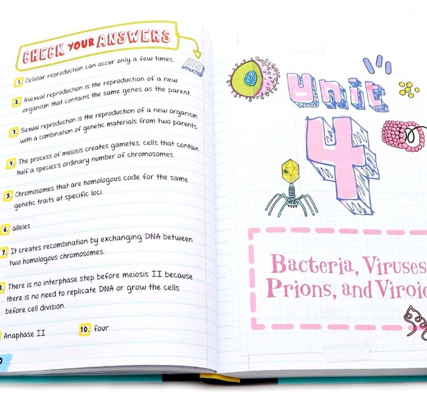 “Everything You Need to Ace Biology in One Big Fat Notebook” нь дунд болон ахлах ангийн сурагчдад зориулсан биологийн иж бүрэн гарын авлага юм. Энэхүү ном нь амьд организм, эс, ДНХ ба генетик, хүний биеийн систем, экосистем, эволюци, экологийн ойлголт зэрэг гол сэдвүүдийг багтаасан бөгөөд ойлгомжтой, энгийн хэлээр тайлбарласан. Хичээл бүрийг өнгөлөг зураг, схем, тэмдэглэл, жишээ бодлого зэрэгтэй хослуулсан нь сурагчдад ойлгоход хялбар бөгөөд сонирхолтой болгодог. Номын онцлог нь гол санаа, товч тэмдэглэл, шалгалтанд бэлтгэх асуулт хариулт-тай бөгөөд сурагчдын мэдээллийг хурдан тогтоох, давтахад зориулагдсан. “Big Fat Notebook” цувралын аргачлалыг ашигласнаар биологийг уйтгартай биш, харин хөгжилтэй, практик аялал болгон үзүүлдэг. Энэ нь гэрийн даалгавар, хичээл, шалгалтанд бэлтгэхэд төгс хэрэгсэл юм.