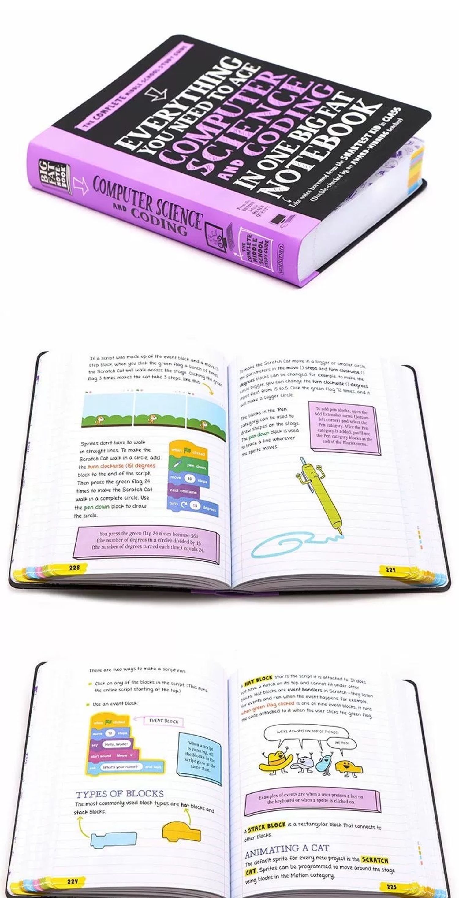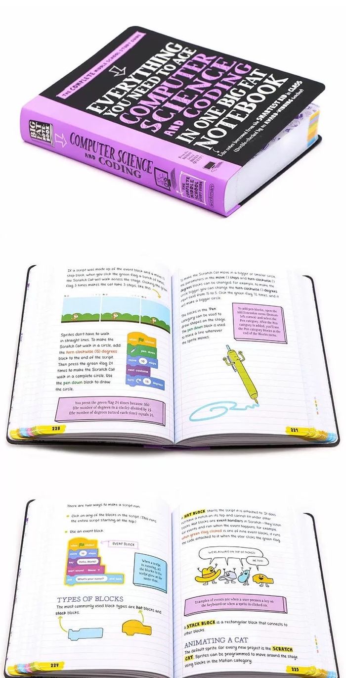 “Everything You Need to Ace Computer Science and Coding in One Big Fat Notebook” нь дунд болон ахлах ангийн сурагчдад зориулсан компьютерийн шинжлэх ухаан, код бичихийн суурь мэдлэгийг ойлгомжтой байдлаар тайлбарласан гарын авлага юм. Энэхүү номд компьютерийн үндэс, алгоритм, өгөгдлийн бүтэц, код бичих логик, HTML, CSS, Python зэрэг сэдвийг агуулдаг. Хичээл бүрийг өнгөлөг зураг, гар бичгийн маягийн тэмдэглэл, жишээ код, дасгалуудаар баяжуулсан нь сурагчдад ойлгоход хялбар болгодог. Мөн програмчлалын сэтгэлгээ, асуудал шийдвэрлэх чадварыг хөгжүүлэхэд чиглэсэн дасгалуудтай. Энэ ном нь компьютерийн шинжлэх ухаанд шинээр орж буй сурагчдад хөгжилтэй, шат дараатай, практик ойлголт олгодог бөгөөд ирээдүйн инженер, програмист болох замд урам зориг өгдөг төгс гарын авлага юм.