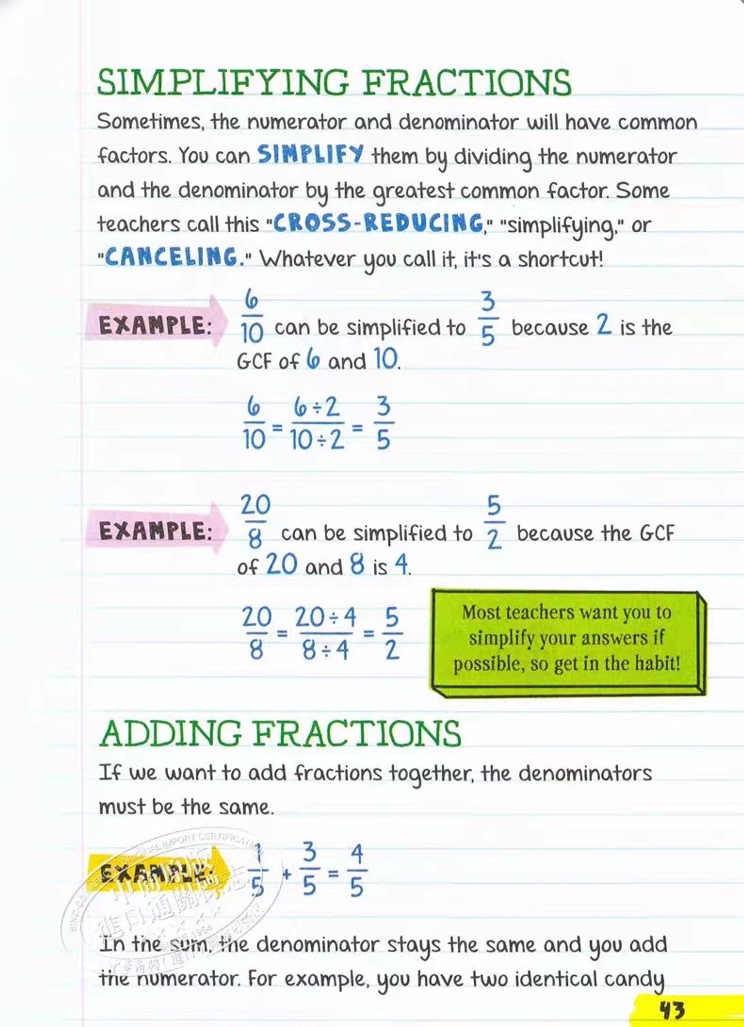 “Everything You Need to Ace Math in One Big Fat Notebook” нь дунд болон ахлах ангийн сурагчдад зориулсан математикийн иж бүрэн гарын авлага юм. Энэхүү ном нь нэгтгэл, хуваарилалт, хувь, бутархай, алгебр, геометр, тэгшитгэл, магадлал, статистик зэрэг гол сэдвүүдийг ойлгомжтой, шат дараатай тайлбарласан. Хичээл бүрийг өнгөлөг зураг, схем, тэмдэглэл, бодлогын жишээ, дасгал-тай хослуулснаар сурагчид ойлголтыг хурдан тогтоож, давтахад хялбар болгодог. Номын онцлог нь гол санаа, товч тэмдэглэл, шалгалтанд бэлтгэх асуулт хариулт-тай бөгөөд логик сэтгэхүй, асуудал шийдвэрлэх чадварыг хөгжүүлэхэд зориулагдсан. “Big Fat Notebook” цувралын аргачлалыг ашигласнаар математикийн хичээл уйтгартай бус, харин хөгжилтэй, практик суралцах туршлага болж хувирдаг. Энэ ном нь гэрийн даалгавар, хичээл, шалгалтанд бэлтгэхэд төгс хэрэгсэл юм.