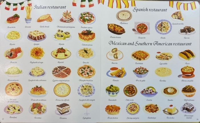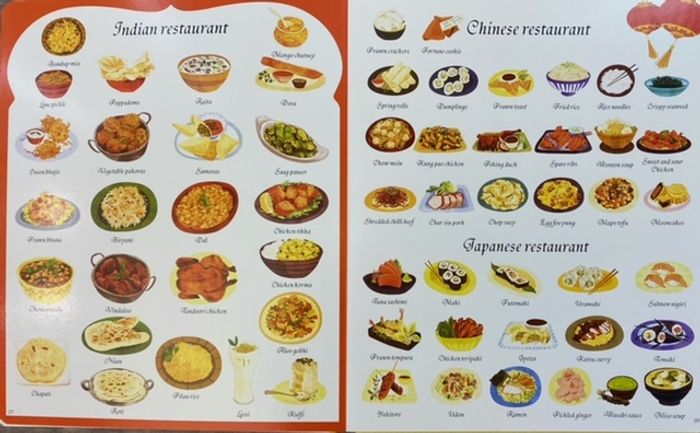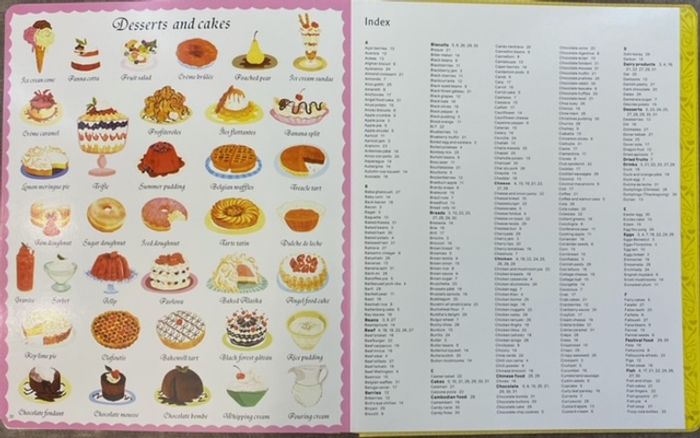Нарийн боовны төрлүүд, жигнэмэг, жимс, хүнсний ногоо, нарийн ногоо, бяслагны төрлүүд, мах махан бүтээгдэхүүн, чихэр жимс, өглөө, өдөр, оройн хоол зоогууд, кофе шопын бүтээгдэхүүн, орон орны үндэсний хоол зоогууд, амттан гэх мэтчилэнгээр маш олон төрлөөр нь ангилан, сонирхол татам зурагтайгаар оруулжээ.