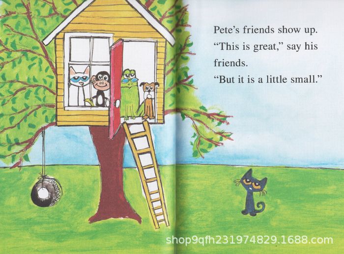 Америкийн хүүхдийн зохиолч James Dean-ий “I can read” цувралын “Pete the Cat” номонд шинэ зүйлийг турших, шинэ найз нөхөдтэй болох дуртай, өөдрөг, урам зоригтой алтан нүдтэй, цэнхэр үстэй Pete муурын тухай гардаг.
