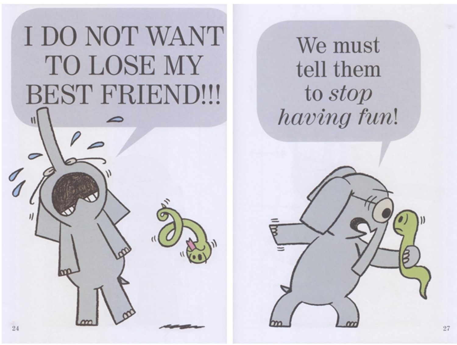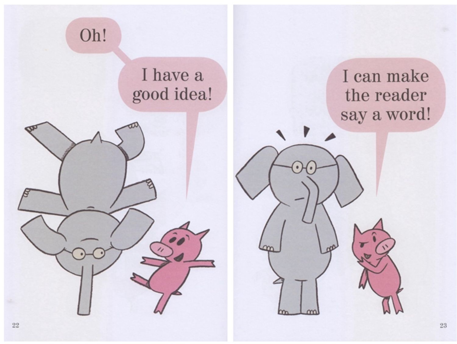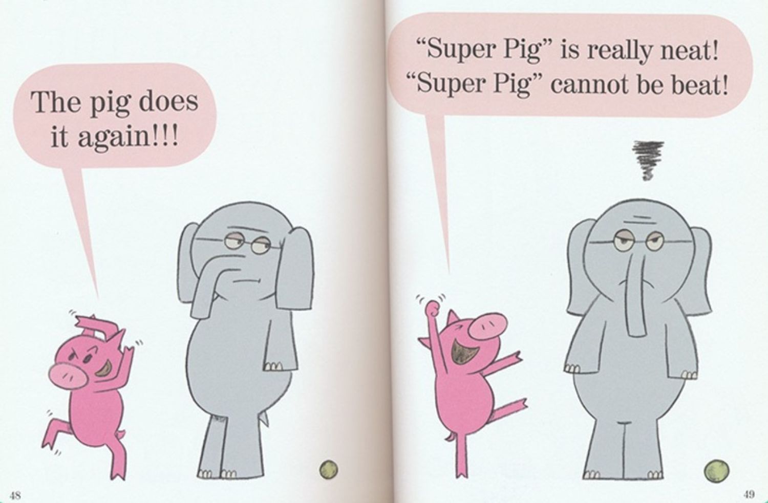 Mo Williams-ийн зохиосон “Elephant and Piggie” цуврал нь 5-8 настай англи хэл анхлан суралцагч хүүхдүүдэд зориулсан ном бөгөөд Gerald заан болон Piggie хэмээх гахайн тоорой нарын нөхөрлөл, тэдэнд тохиолдсон адал явдлыг харуулсан зохиол юм. Уг ном хөгжилтэй хошин үйл явдлыг харуулсан зурагтай, том үсгээр, цөөн энгийн харилцаа өгүүлбэрээр бичигдсэн учраас хүүхдүүдэд англиар унших, ярих чадварыг нэмэгдүүлэхэд тусалдаг.