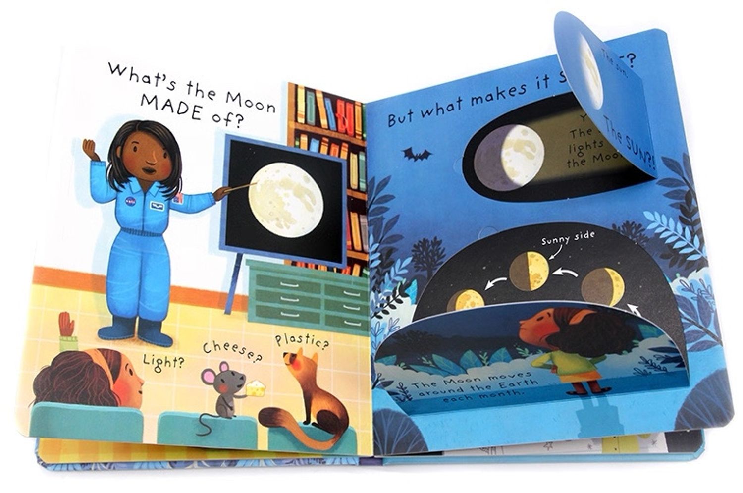 What Is the Moon? ном нь Usborne Publishing-ийн хүүхдэд зориулсан интерактив боловсролын ном бөгөөд сарны бүтэц, гарал үүсэл, шинж чанар, дэлхийтэй холбоо, сарны үе шатуудыг энгийн, хөгжилтэй хэлбэрээр тайлбарладаг. Энэхүү ном нь Lift-the-Flap Very First Questions & Answers цувралд багтдаг бөгөөд хүүхдүүд асуулт, хариулт, товчлууруудыг ашиглан сарны тухай ойлголттой болж, байгалийн үзэгдлийг сонирхолтой байдлаар судлах боломжтой. Өнгөлөг зураг, хөдөлгөөнт хэсгүүд нь хүүхдийн анхаарал, сонирхлыг татаж, унших үйл явцыг идэвхтэй болгодог. 4–8 насны хүүхдүүдэд зориулагдсан бөгөөд сансар, байгаль, шинжлэх ухааны анхны мэдлэгийг хөгжүүлэх зорилготой бүтээл юм.