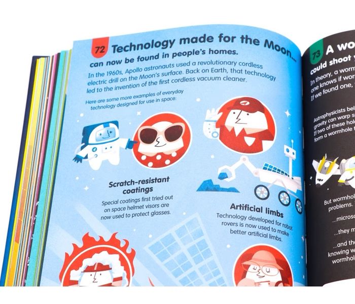 “100 Things to Know About Space” нь сансар огторгуй, одон орон судлалд анхлан сонирхож буй уншигчдад зориулсан ойлгомжтой, сонирхолтой гарын авлага юм. Энэхүү ном нь нарны аймаг, гаригууд, одод, оддын систем, хар нүх, сансар судлалын технологи, сансар огторгуй дахь амьдрал, эрдэм шинжилгээний нээлт зэрэг сэдвүүдийг 100 товч ойлголтоор хураангуй тайлбарласан. Агуулга нь өнгө өнгийн зураг, инфографик, схем, бодит жишээ, асуулт хариулт-тай тул уншигчид сансар огторгуй, одон орон судлалыг амьдралтай холбон ойлгох боломжтой. Мөн шинжлэх ухааны аргачлал, туршилт, бодлого бодох чадвар-ыг хөгжүүлэх дасгалуудыг багтаасан нь суралцагчдыг идэвхтэй суралцахад урамшуулдаг. “100 Things to Know About Space” нь хүүхэд, өсвөр нас, анхлан суралцагчдад сансар огторгуйн нууцад итгэлтэй алхам хийх, сонирхлыг төрүүлэх төгс эхлэл болдог практик, хөгжилтэй, урам зоригтой гарын авлага юм.