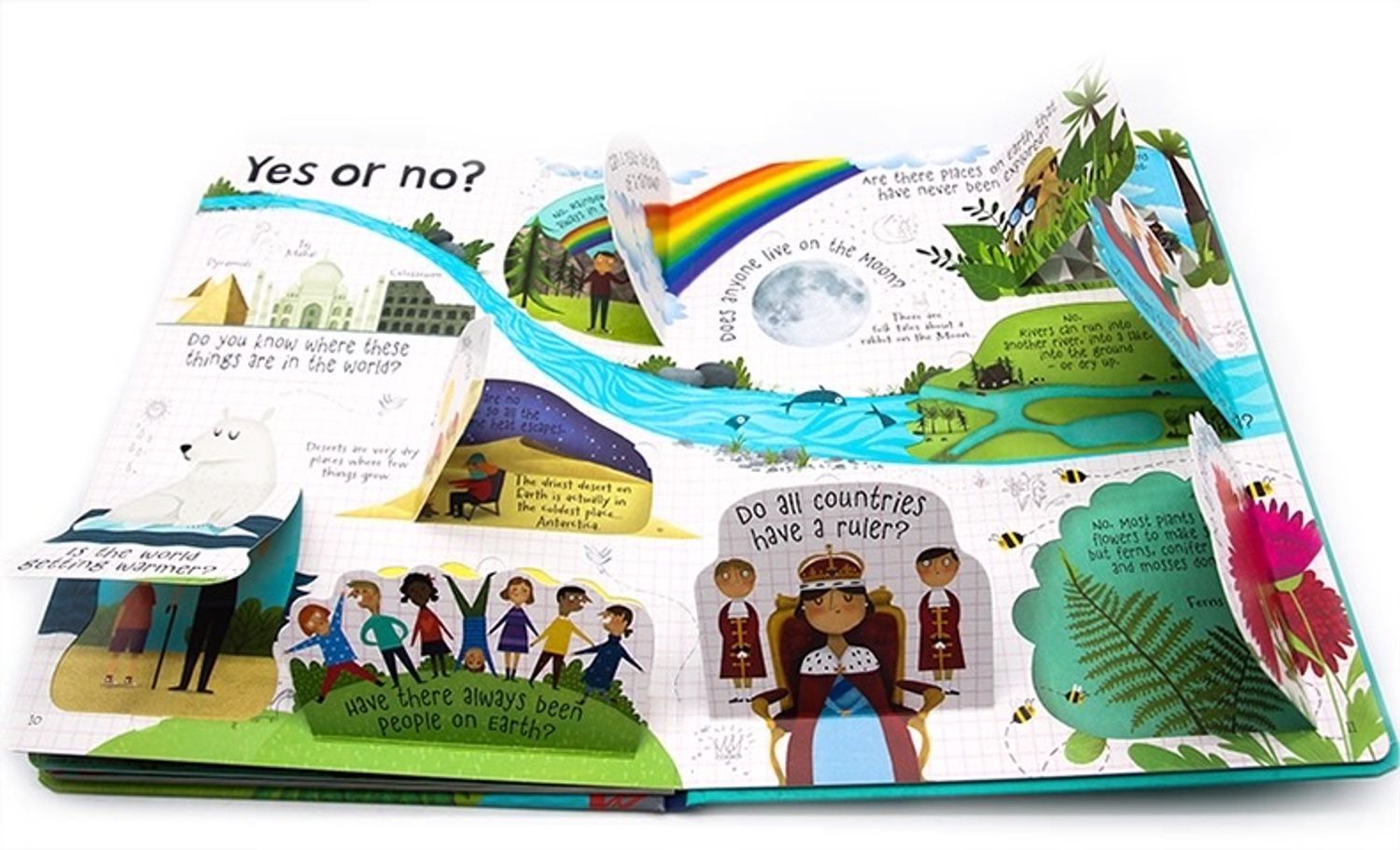 Questions and Answers About Our World нь Usborne Publishing-ийн хүүхдэд зориулсан интерактив боловсролын ном бөгөөд дэлхий ертөнц, байгаль, улс орон, хүмүүсийн амьдрал, соёл, байгалийн үзэгдлийг энгийн, хөгжилтэй хэлбэрээр тайлбарладаг. Энэхүү ном нь Lift-the-Flap Very First Questions & Answers цувралд багтдаг бөгөөд хүүхдүүд асуулт-хариултын хэлбэрээр уншиж, газрын зураг, цаг уур, амьтад, ургамал, хүмүүнлэгийн ойлголтыг сонирхолтой байдлаар судлах боломжтой. Өнгөлөг зураг, хөдөлгөөнт товчлуурууд нь хүүхдийн анхаарлыг татаж, унших үйл явцыг идэвхтэй болгодог. 4–8 насны хүүхдүүдэд зориулагдсан энэхүү бүтээл нь дэлхий ертөнцийг ойлгох, соёл, байгальд сонирхолтой хандлага бий болгох, танин мэдэхүйн чадварыг хөгжүүлэх зорилготой юм.