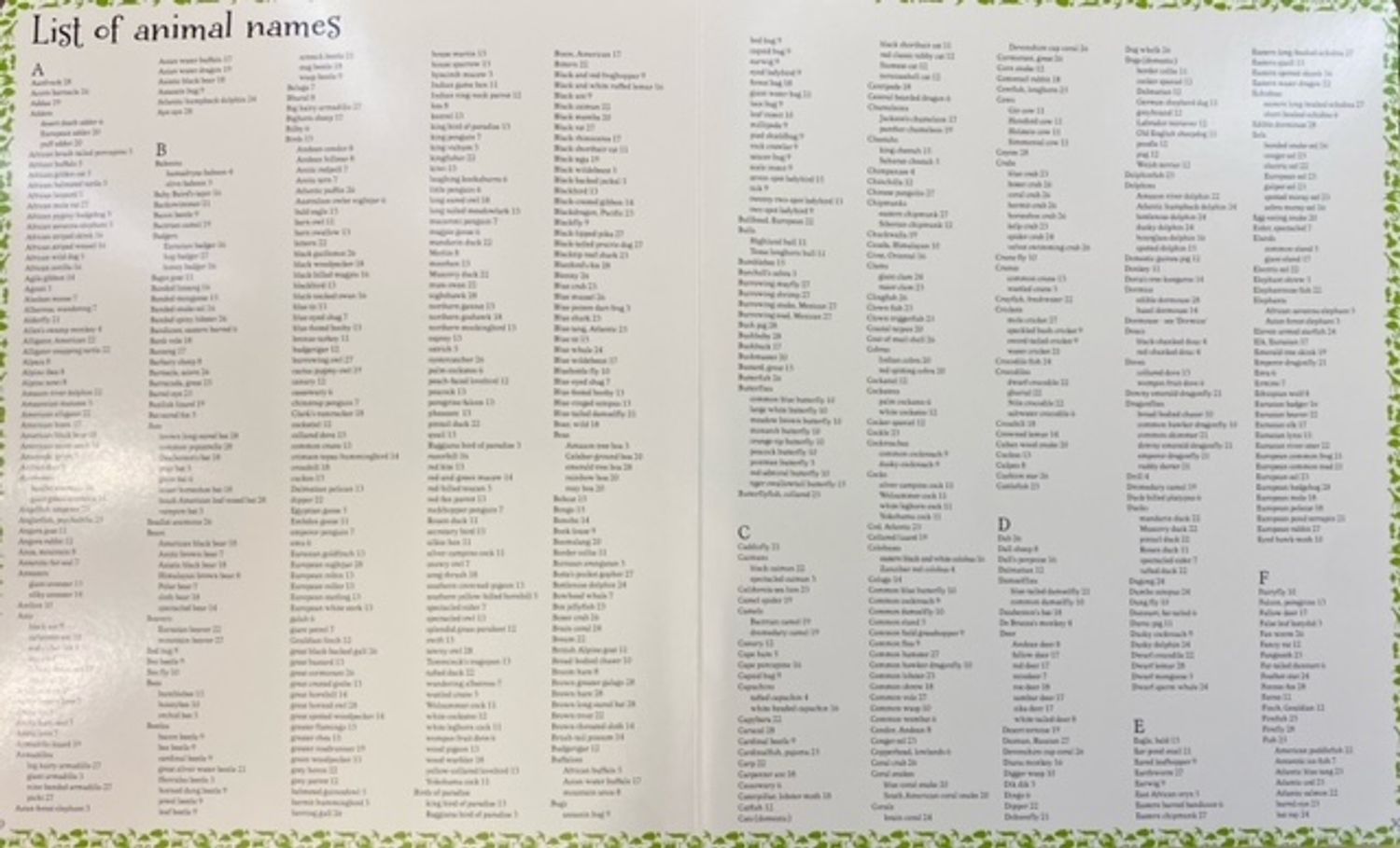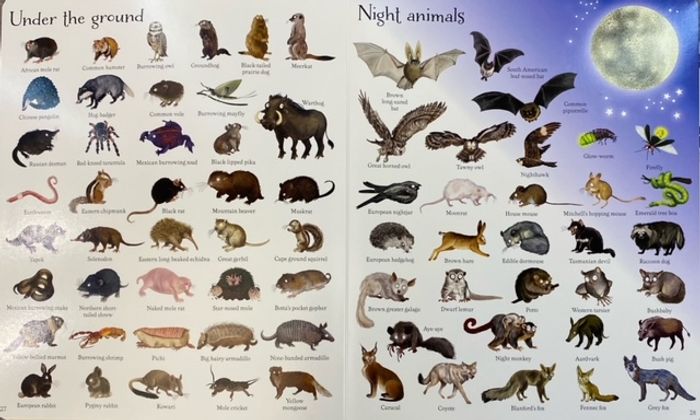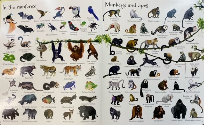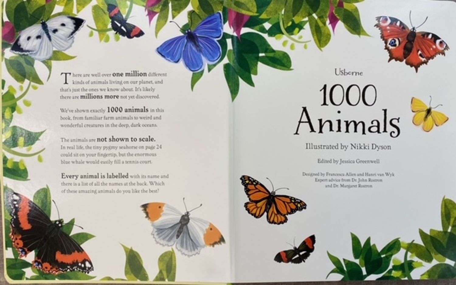 Usborne хэвлэлийн газраас эрхлэн гаргасан Usborne “1000 animals” номонд нийт 1000 амьтдын нэрсийг зургийн хамт оруулсан байдаг. Эдгээр амьтдыг: