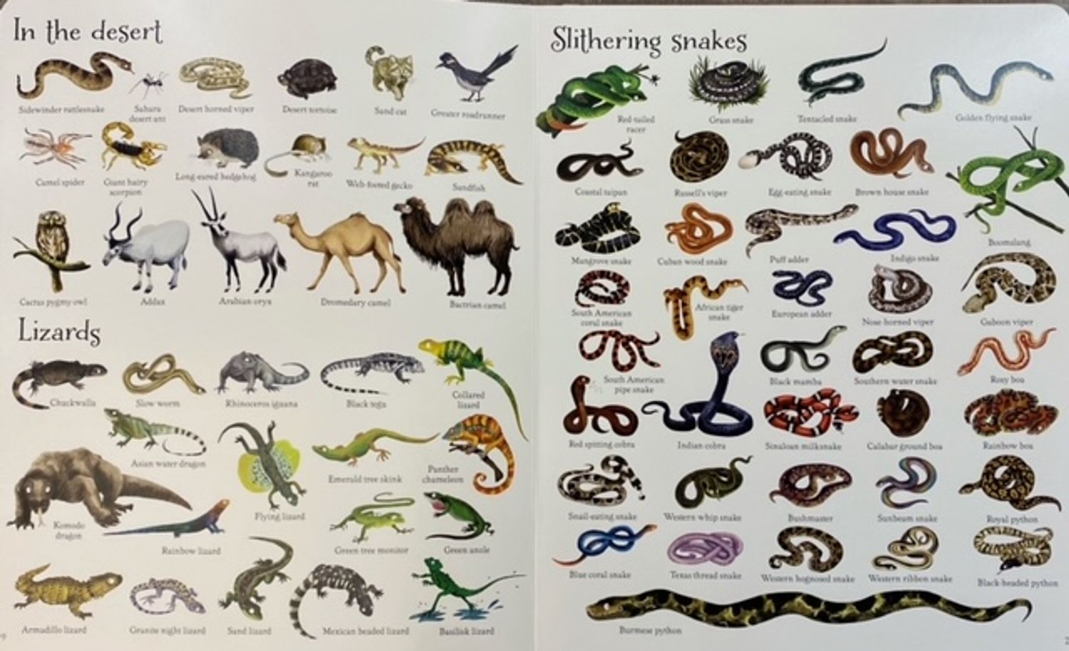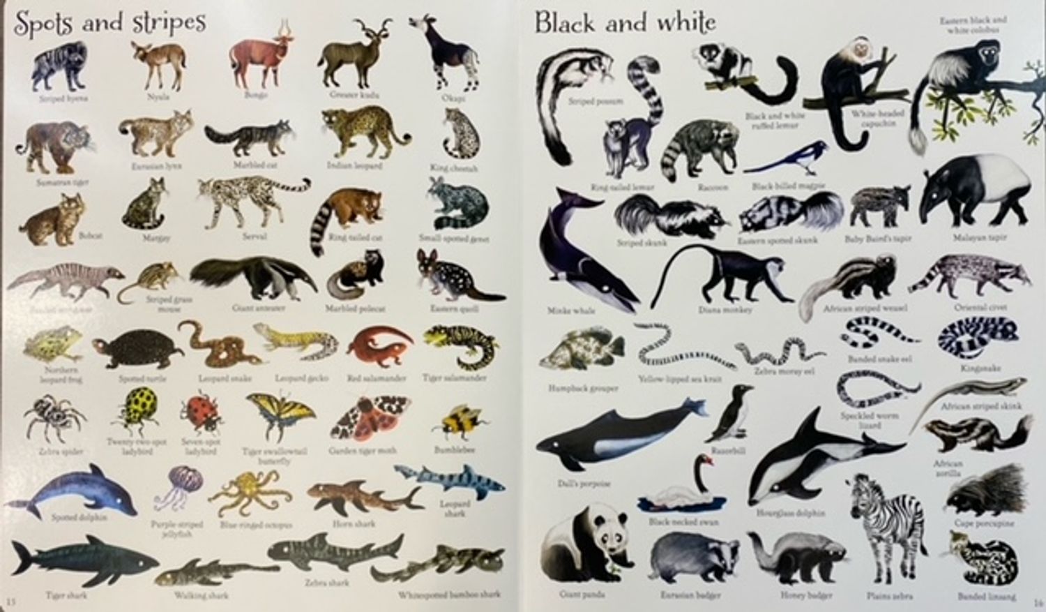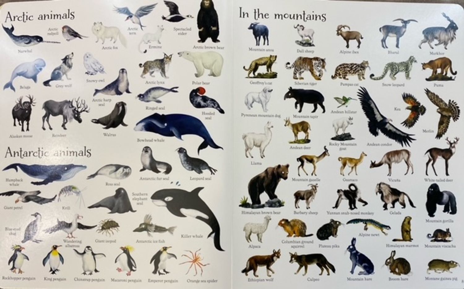 Usborne хэвлэлийн газраас эрхлэн гаргасан Usborne “1000 animals” номонд нийт 1000 амьтдын нэрсийг зургийн хамт оруулсан байдаг. Эдгээр амьтдыг:
