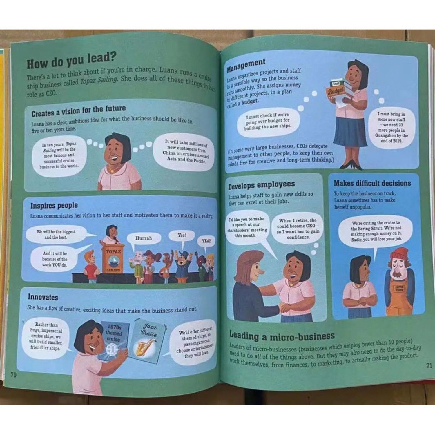 Бизнесээ хэрхэн эхлүүлэх, санхүүгээ хэрхэн удирдах тухай болон мөнгө санхүү, зээлийн хүү, өрсөлдөөн, нийлүүлэлтийн сүлжээ зэргийн талаар маш энгийнээр ойлгомжтой байдлаар тайлбарласан байдаг.